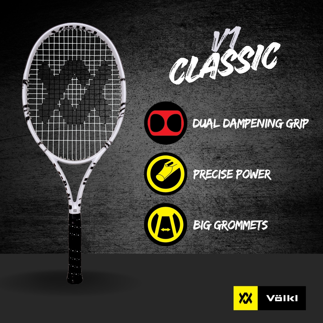 Der V1 Classic bietet ein weiches, aber knackiges Spielgefühl. Durch Änderungen an der Besaitung sowie der Besaitungshärte lässt sich der V1 Classic besser als bei jedem anderen Schläger auf dem Markt an die Bedürfnisse des Spielers anpassen. Das Spin- und Power Potenzial des V1 Classic macht den Schläger zu einer hervorragenden Wahl für praktisch alle Spieler. Wer sich für den V1 Classic entscheidet, kann sich darauf verlassen, dass er mit diesem Schläger eine hervorragende Leistung erzielt und gleichzeitig seinen Arm nicht überansprucht. Es ist wahrlich ein Schläger, der den Namen CLASSIC verdient!*